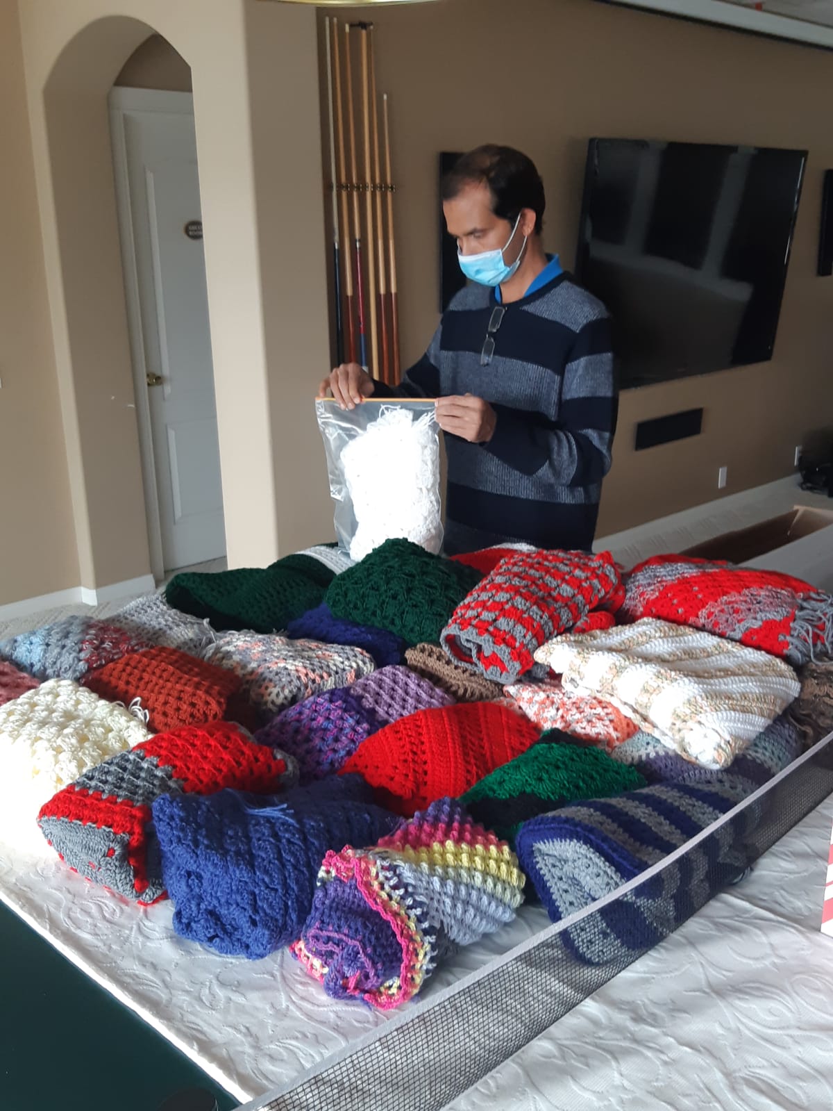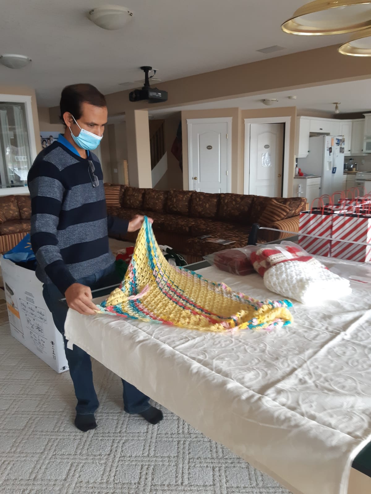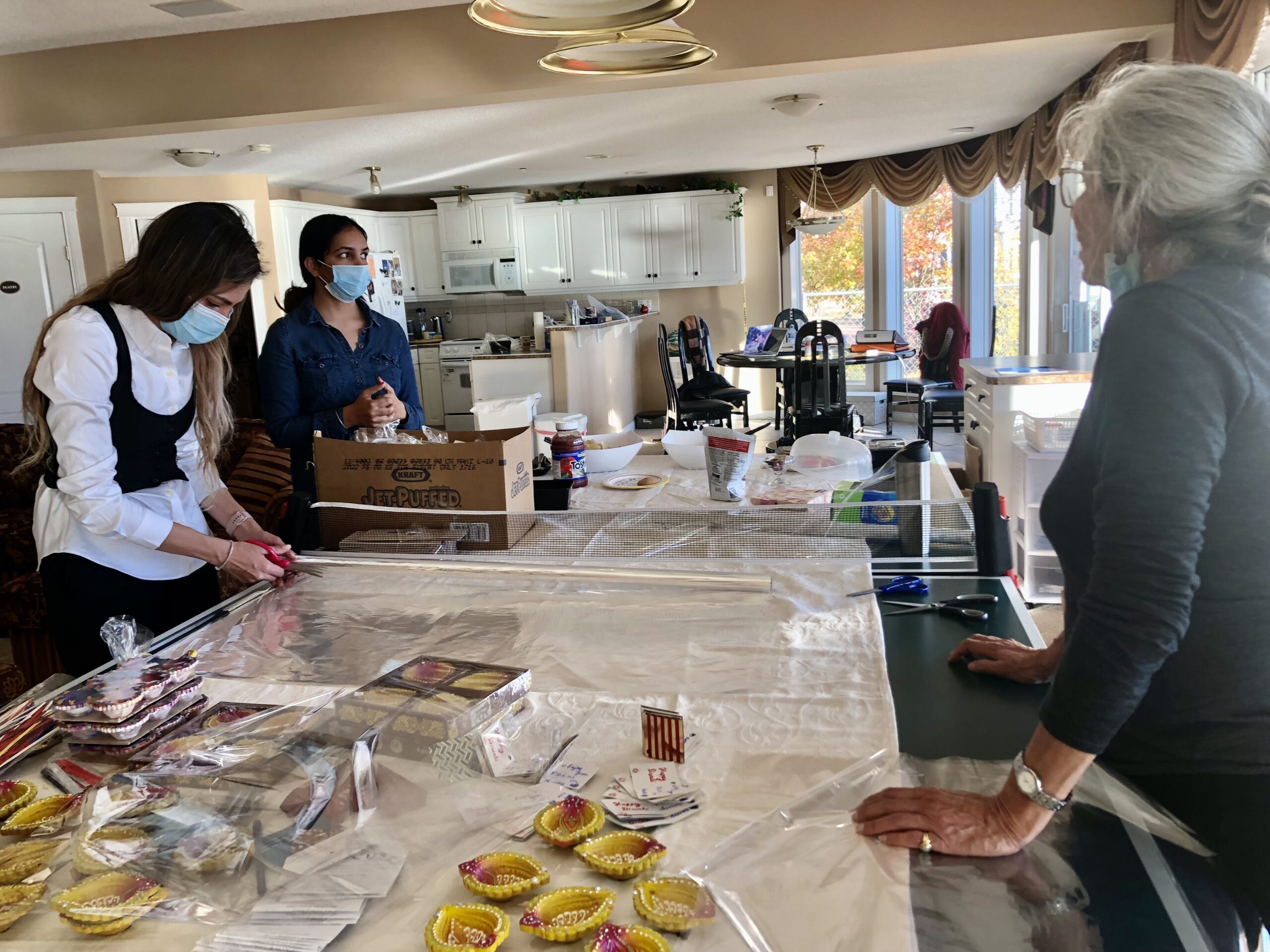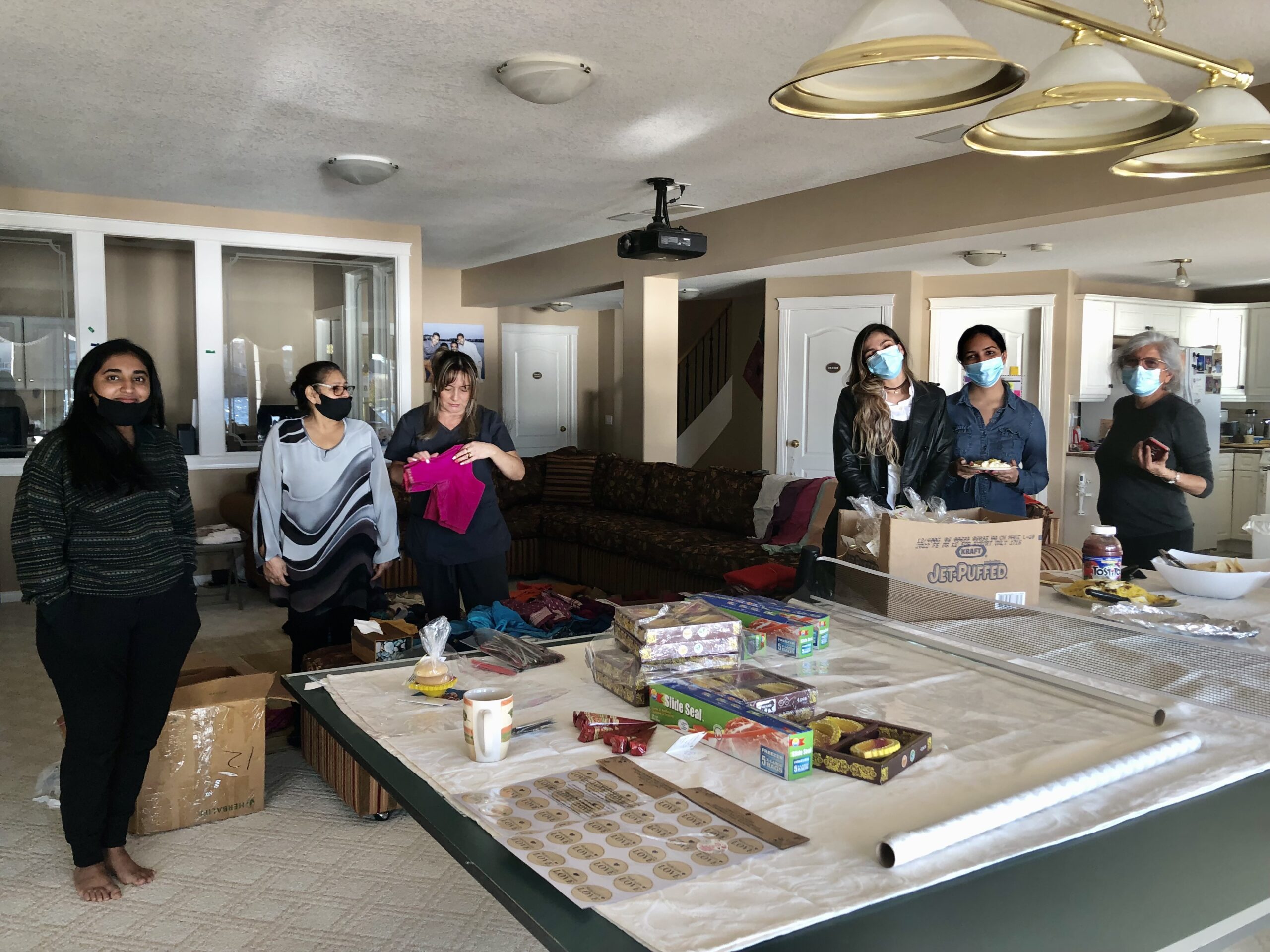 Packaging 100 Diwali Treat packs for distribution at our table at Diwali Bazaar prepared by Rafeeque Gangji .- hi-liting youth engagement with meals of Love